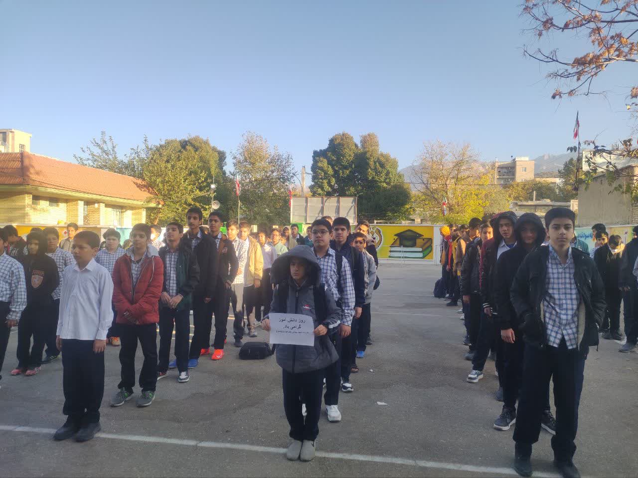 همزمان با فرارسیدن ۱۳ آبان، روز ملی مبارزه با استکبار و روز دانشآموز، مراسم گرامیداشتی در مدرسه برگزار شد.